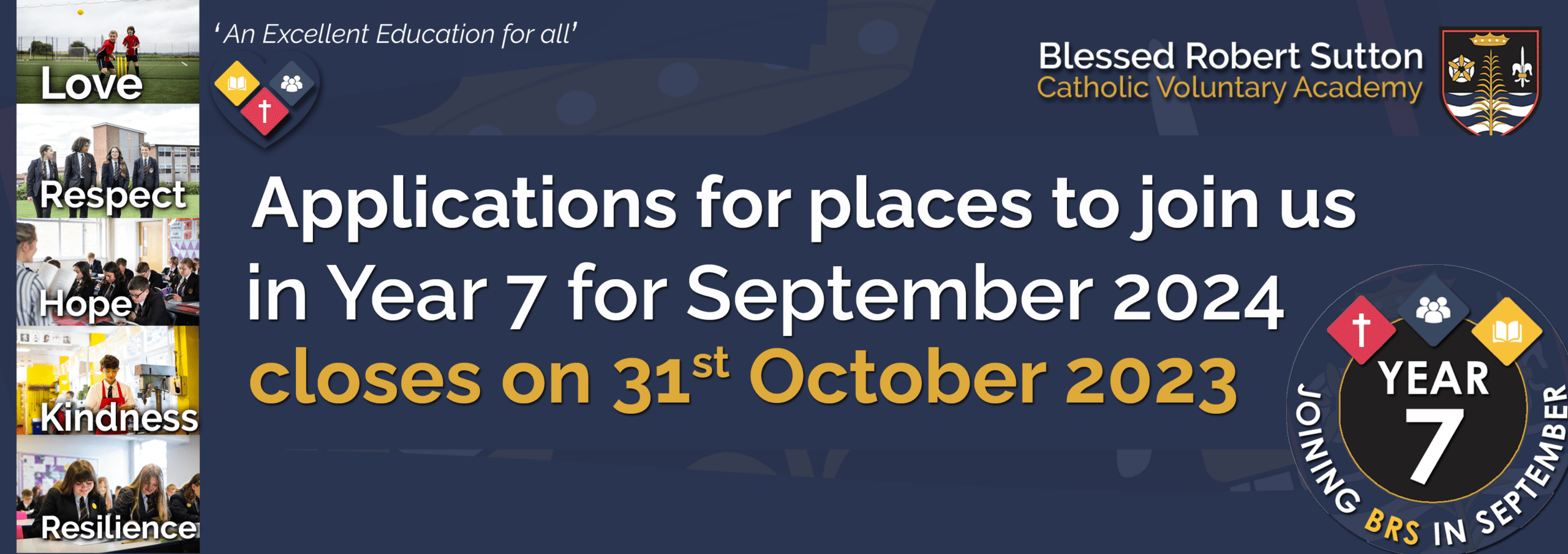Blessed Robert Sutton Catholic Voluntary Academy is under the Trusteeship of the Diocese of Nottingham and belong to the Nottingham Diocesan family of schools. They are founded by and are part of the Catholic Church and seek at all times to be a witness to Jesus Christ. Religious Education and worship are in accordance with the teachings and doctrines of the Catholic Church. This does not affect the right of parents or carers who are not of the faith of these schools to apply for and to be considered for places. We ask all parents or carers applying for a place to respect this ethos and its importance to the school community.